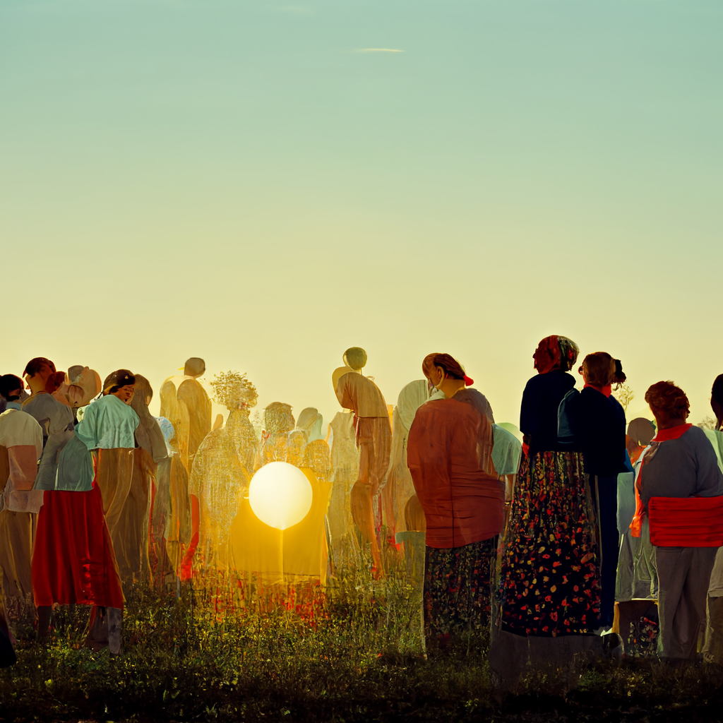 Used an Artificial Intelligence art generation app to create a one-of-a-kind event cover photo that reflects people gathering around to celebrate our sun.
