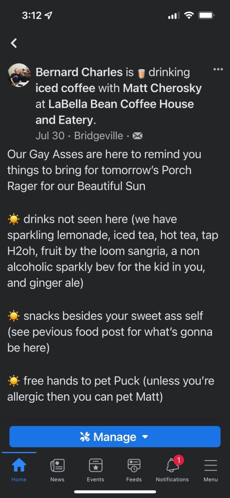 Created the Facebook event after the porch was finished.