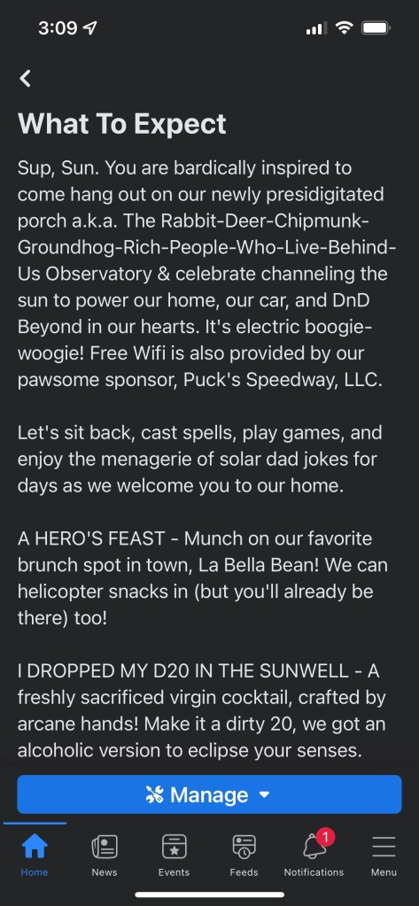 Facebook Event Description included a sundry of sun and Dungeons & Dragons puns your dad would love.